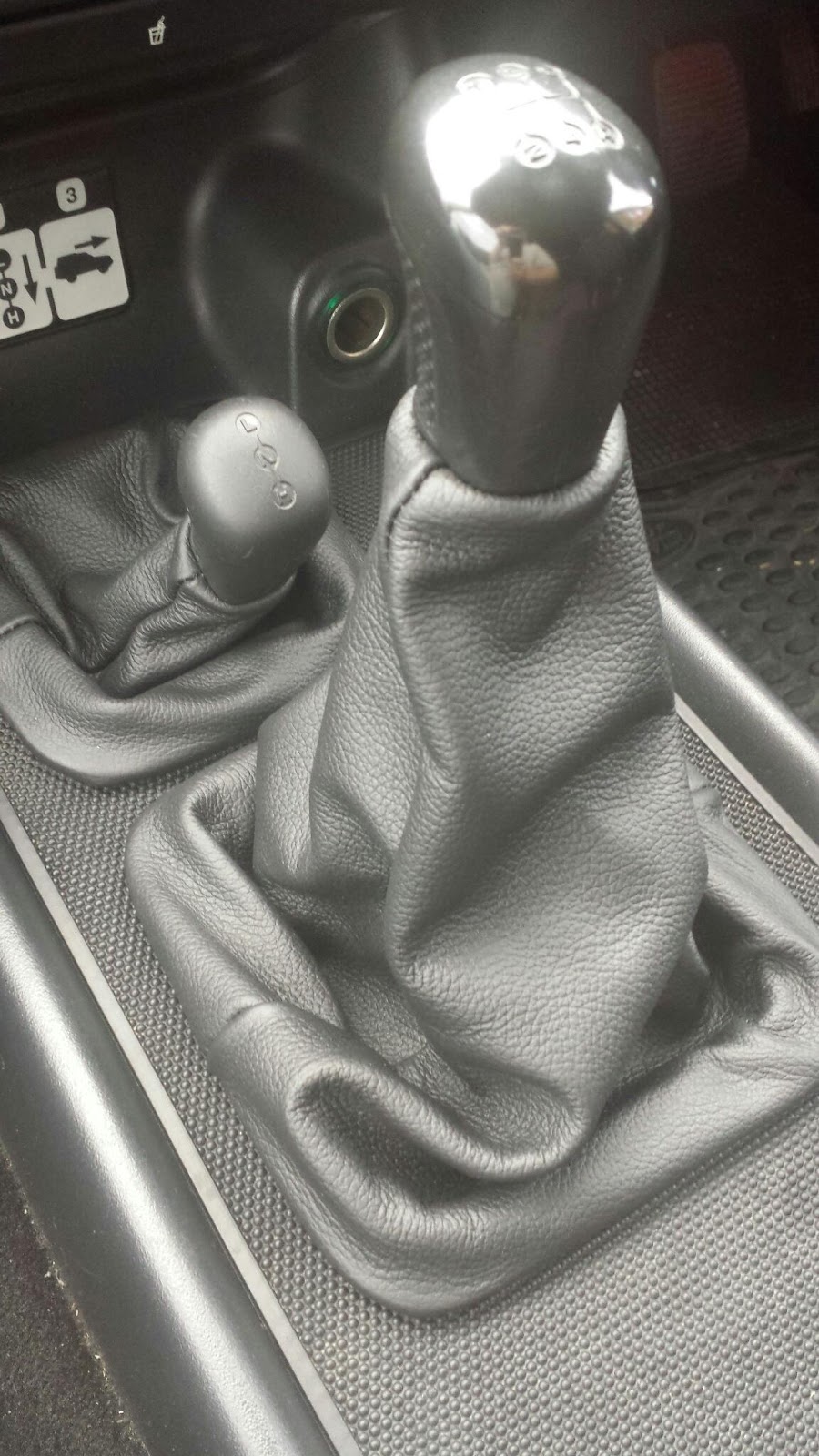 Here is the new gaiter sliding down the handbrake lever to take its place.